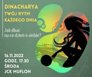 Comiesięczny warsztat w każdą ostatnią środę miesiąca. W listopadzie wyjątkowo w połowie miesiąca – 16.11.2022 o godz. 17.30Temat spotkania ‘Dinaczarya.Twój rytm każdego dnia”JCK Muflon Sobieszów link do